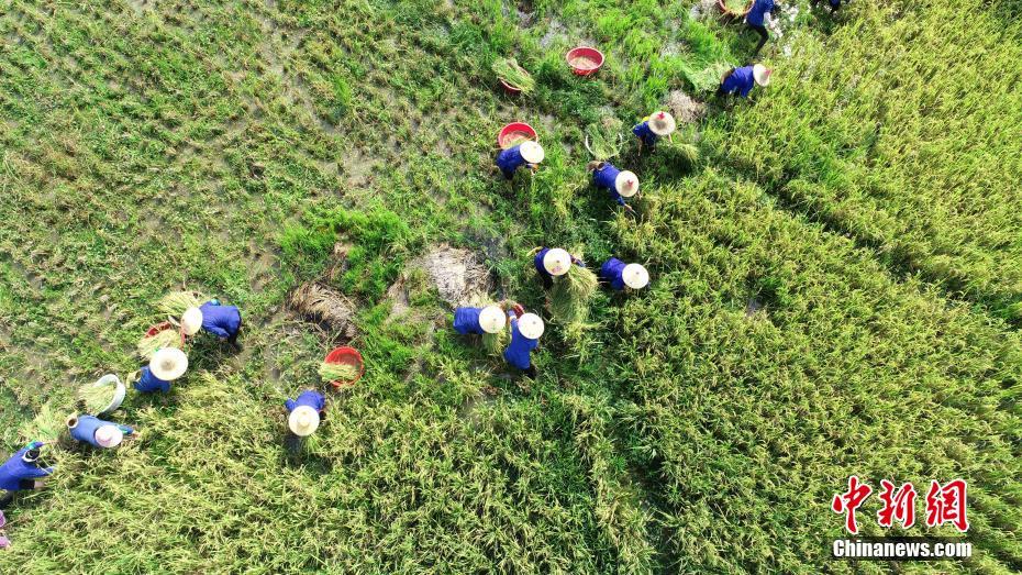 广西百余名侗族妇女赛抓鱼打谷庆祝丰收