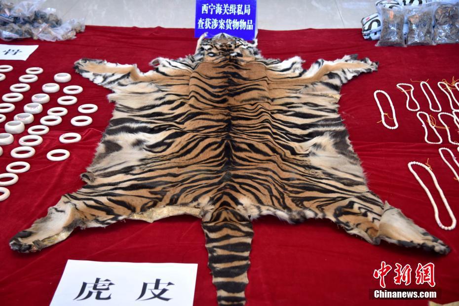 10月14日,西宁海关发布消息称,西宁海关缉私局日前成功破获了一起走私濒危珍贵动物制品案件,该案为今年中国西北内陆海关查获案值最高的走私濒危珍贵动物制品案件。图为9月5日西宁海关查获走私的虎皮。 西宁海关供图