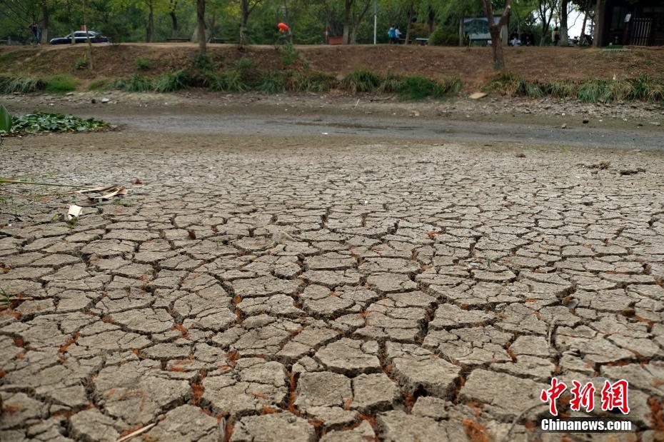 10月14日,受降水偏少影响,南京燕雀湖东段部分湖底显露。燕雀湖位于南京紫金山梅花谷南侧,每到秋季,这里风景如画,是众多市民和游客赏秋游玩的好去处。中新社记者 泱波 摄