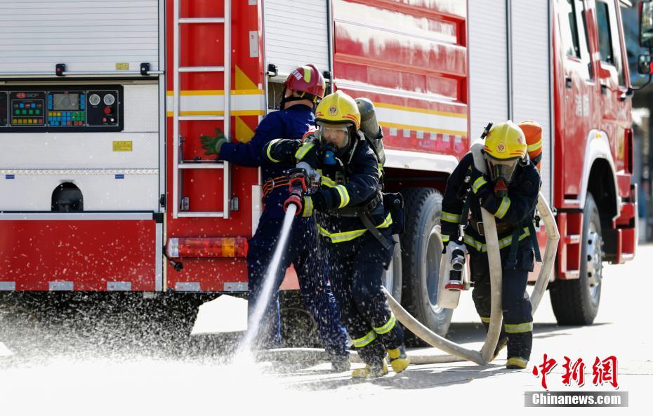 10月16日,哈尔滨市消防救援支队2019年度岗位练兵比武竞赛在哈尔滨举行。图为纵深灭火救援操竞赛现场。中新社记者 吕品 摄
