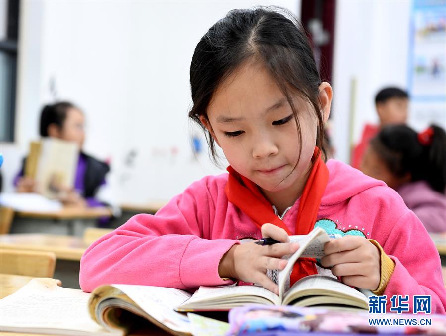 10月15日,新乡市育才小学明德校区的学生在课后写作业。