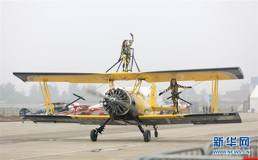 10月17日,特技飞行表演队在航空博览会上表演。 当日,为期4天的2019中国国际通用航空博览会在河北省石家庄市开幕。百余家国内外通用航空及配套产业企业参展,展出实用型、运动型、试验型等通用航空飞行器,展区面积近18万平方米。 新华社记者 赵丹惠 摄
