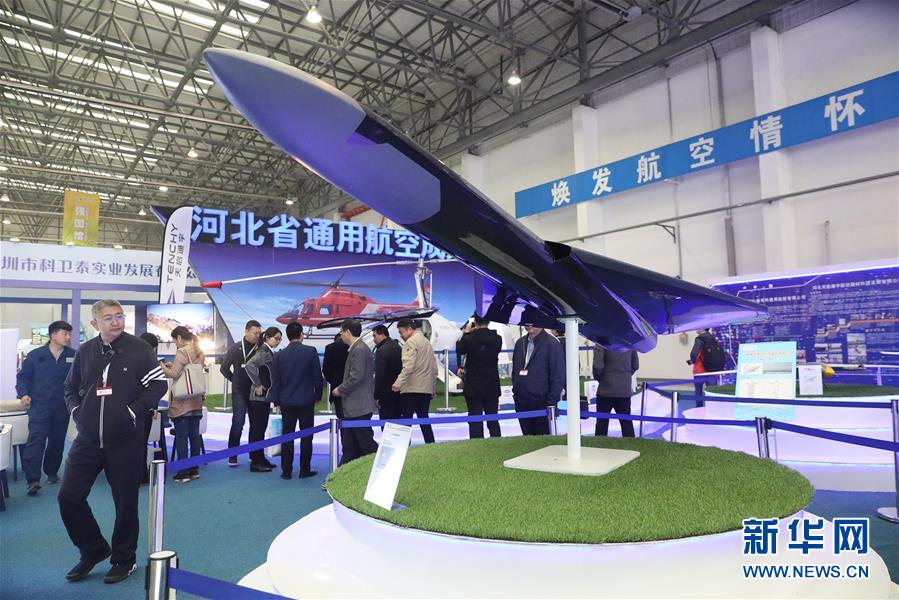 10月17日,观众在航空博览会上参观。 当日,为期4天的2019中国国际通用航空博览会在河北省石家庄市开幕。百余家国内外通用航空及配套产业企业参展,展出实用型、运动型、试验型等通用航空飞行器,展区面积近18万平方米。 新华社记者 赵丹惠 摄