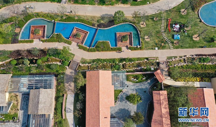 10月19日无人机拍摄的宋庄非遗主题民宿景色。 近年来,江苏徐州新沂市着手打造精品主题民宿,加强文旅融合,助力乡村振兴。其辖区内的宋庄非遗主题民宿已初具规模,建有农舍度假别院、星空屋、水岸自助餐吧、水上运动馆等几大功能区,主要开展会务及培训接待、婚纱摄影、亲子田园风情游览、农耕体验、水上驿站等服务,后续将进一步引进非遗项目,突出文化主题。 新华社记者 季春鹏 摄
