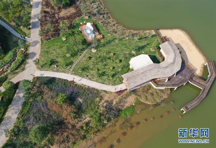 10月19日无人机拍摄的宋庄非遗主题民宿景色。 近年来,江苏徐州新沂市着手打造精品主题民宿,加强文旅融合,助力乡村振兴。其辖区内的宋庄非遗主题民宿已初具规模,建有农舍度假别院、星空屋、水岸自助餐吧、水上运动馆等几大功能区,主要开展会务及培训接待、婚纱摄影、亲子田园风情游览、农耕体验、水上驿站等服务,后续将进一步引进非遗项目,突出文化主题。 新华社记者 季春鹏 摄