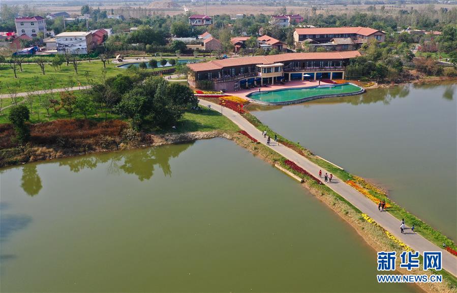 游人在宋庄非遗主题民宿内休闲观光(10月19日无人机拍摄)。 近年来,江苏徐州新沂市着手打造精品主题民宿,加强文旅融合,助力乡村振兴。其辖区内的宋庄非遗主题民宿已初具规模,建有农舍度假别院、星空屋、水岸自助餐吧、水上运动馆等几大功能区,主要开展会务及培训接待、婚纱摄影、亲子田园风情游览、农耕体验、水上驿站等服务,后续将进一步引进非遗项目,突出文化主题。 新华社记者 季春鹏 摄