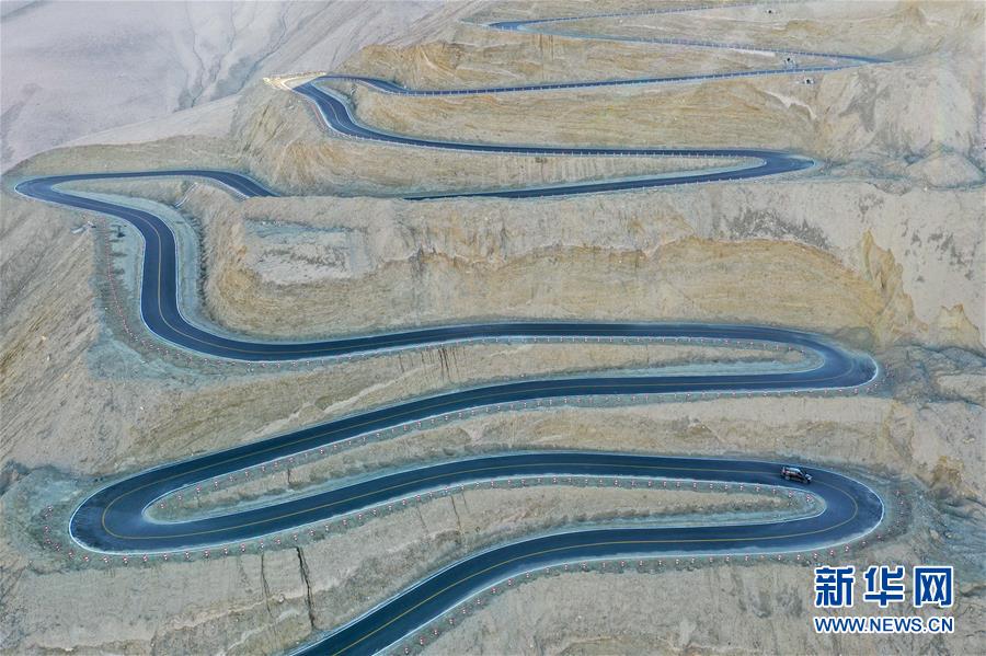 这是10月20日无人机拍摄的新疆塔什库尔干塔吉克自治县吾格亚提盘山公路。 新华社记者丁磊摄