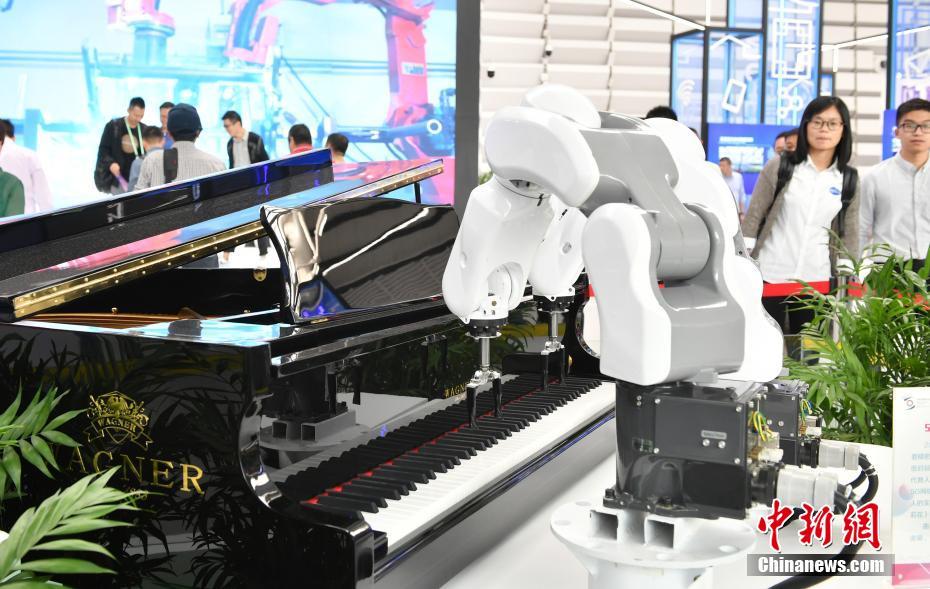10月21日,机械手臂现场“演奏”钢琴。在浙江乌镇举行的第六届世界互联网大会“互联网之光”博览会目前已吸引超7万人次观众参观。本届博览会共有来自全球的600余家企业亮相。以远程驾驶、5G机器人等为代表的“高精尖”科技吸睛无数。一批应用人工智能技术服务民众生活、体现科技温度的科技成果,自博览会开幕以来同样成为聚集人气的“明星”。中新社记者 张茵 摄