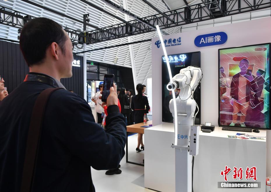 10月21日,一名观众体验AI画像。在浙江乌镇举行的第六届世界互联网大会“互联网之光”博览会目前已吸引超7万人次观众参观。本届博览会共有来自全球的600余家企业亮相。以远程驾驶、5G机器人等为代表的“高精尖”科技吸睛无数。中新社记者 张茵 摄