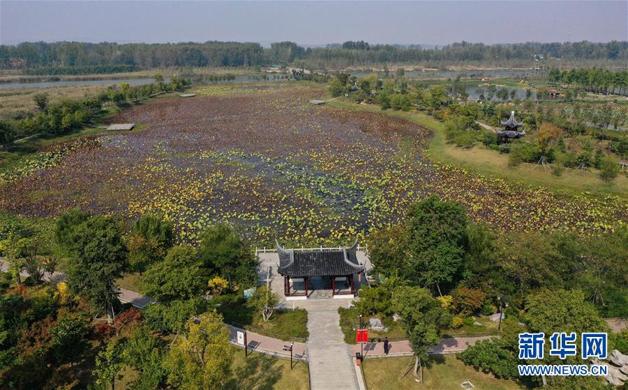 10月20日无人机拍摄的徐州市睢宁县房湾湿地公园景色。新华社记者季春鹏摄