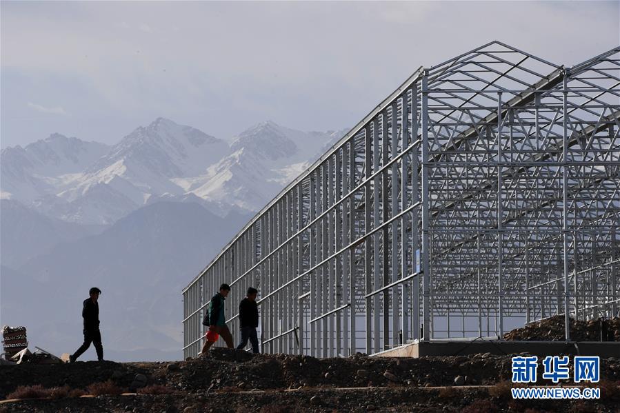 10月22日,在酒泉市肃州区东洞镇,工人在中荷智能连栋温室项目工地忙碌。2019年肃州区已完成戈壁农业建设面积5672亩,戈壁农业总面积达2.5万亩。 近年来,位于甘肃河西走廊的酒泉市利用戈壁光照充足、昼夜温差大等特点,大力发展戈壁农业,带动农户建设高效节水的日光温室大棚,助力农民增收致富。目前全市已建成近4万亩戈壁农业。 新华社记者 马宁 摄