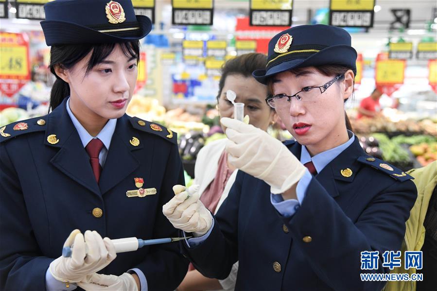 10月23日,即墨区市场监督管理局工作人员在辖区一家超市内为顾客提供现场食品安全检测服务。新华社记者 李紫恒 摄