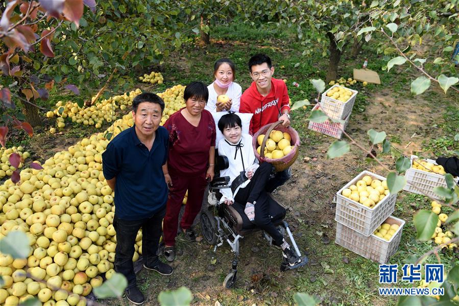 10月23日,李娟和家人在自家梨园里。 新华社记者刘军喜摄