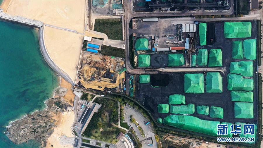 这是山东日照全国首个港口工业岸线退港还海、修复整治生态旅游岸线项目部分区域(10月23日无人机拍摄)。新华社记者王凯摄