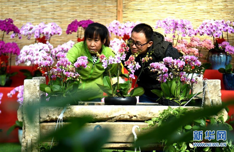 10月27日,在固安县盛世农合生态农业园鲜花销售大厅,工作人员(左)向顾客介绍花的品种。 近年来,河北省固安县积极调整农业产业结构,瞄准京津花卉市场需求,大力发展“鲜花经济”,建立集种植、储运、销售为一体的产业链,带动农民增收,助力乡村振兴。 新华社记者王晓摄