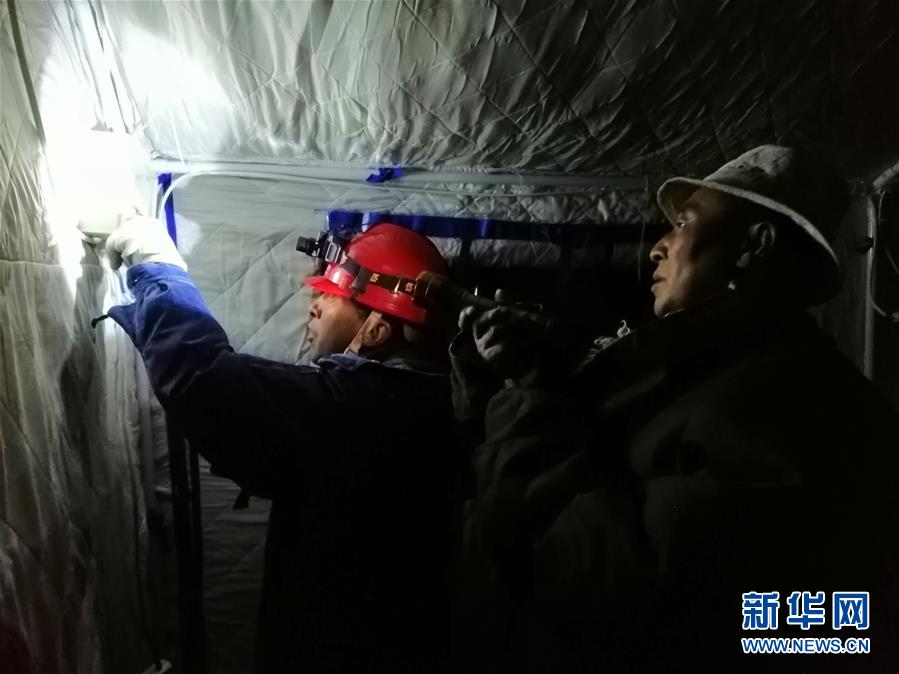 10月28日,国网甘南供电公司共产党员服务队队员在夏河县唐尕昂乡黄科村安置点帐篷内安装漏电保护器。新华社发