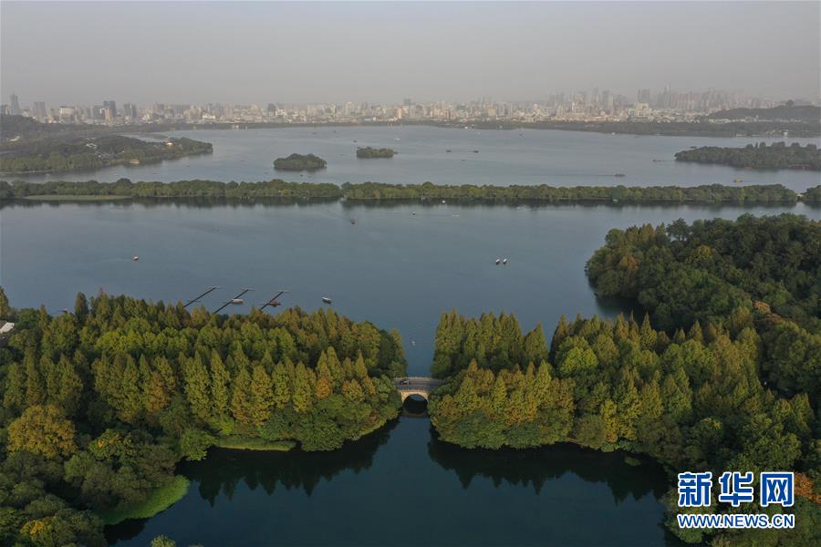 时值深秋,夕阳下的杭州市西湖景区风景迷人。