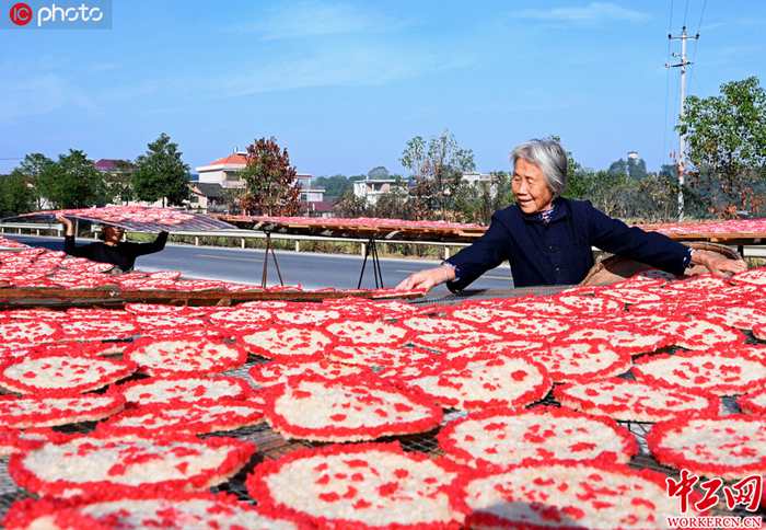 中工网讯 2019年10月30日,湖南省邵阳市洞口县高沙镇青云村,村民在晒米花。米花形如“满月”有花,在民间象征“吉祥喜庆”,湘西南地区一直盛行每蓬喜事待客吃米花的传统习俗。近年来,该村抓住这一商机,引导村民将大米加工制作成米花,投放市场销售。今年,全村有290多户农家加工制作米花,每户现已平均增收近30000元。(本组图片来源东方IC,版权作品,请勿转载。)
