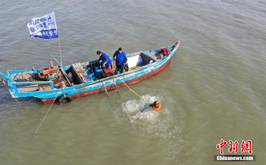 10月30日,在辽宁省大连金普新区鹿鸣岛,当地渔民正忙着下水捕捞海参。据当地海洋渔业部门介绍,大连沿海出产的海参通称为辽刺参,为海参中的上品。金普新区黄、渤两海海域水深且生态环境良好,适宜海参生长。渤海鹿鸣岛海域则是大连金普新区辽刺参的主产区之一,出产的海参肉嫩多刺,营养价值高,随着捕参季的来临,当地渔民日均采捕野生海参可达百公斤左右。图为航拍采捕作业现场。中新社发 朴峰 摄