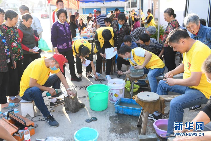 11月2日,枫桥镇义工联合会的志愿者在枫桥镇陈家社区为群众磨刀剪。新华社记者 翁忻旸 摄