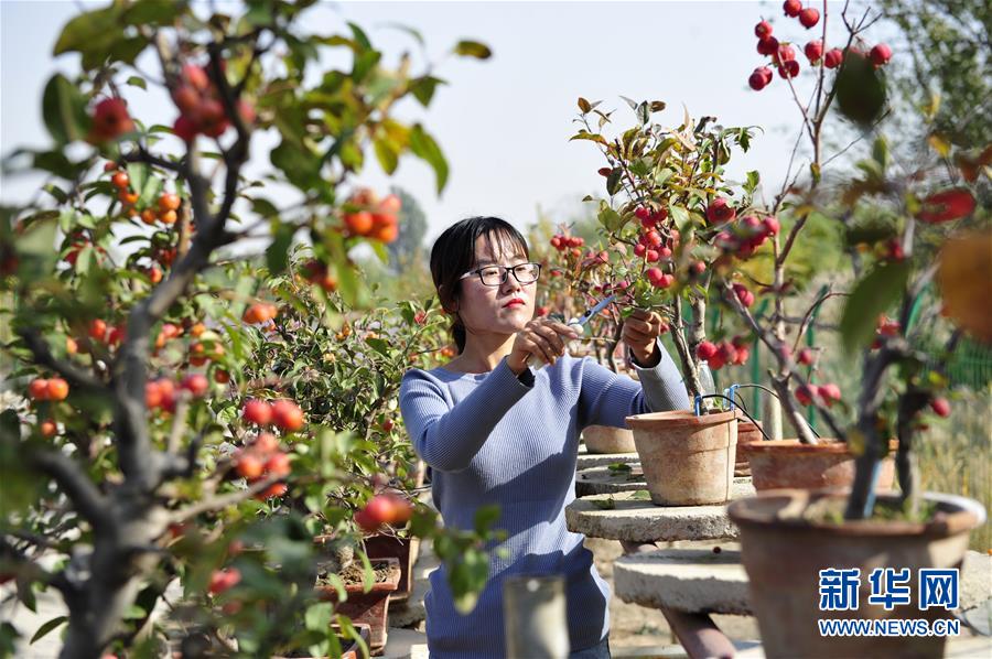 11月4日,河北省泊头市四营乡黄官屯村一个盆栽果树基地的员工在打理盆栽果树。 近年来,河北省泊头市在推进农业产业结构调整过程中,瞄准市场需求,大力发展盆栽果树产业,每年培植苹果、海棠、石榴等盆栽果树20多万盆。盆栽果树既能观赏又能结果,为种植户拓宽增收渠道。 新华社记者 牟宇 摄