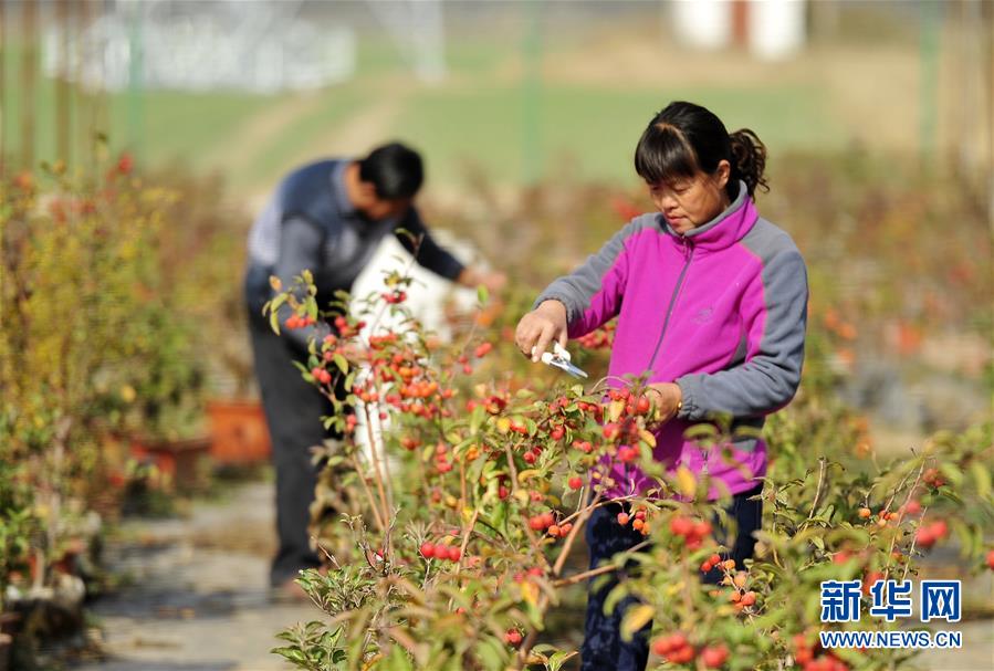 11月4日,河北省泊头市四营乡黄官屯村一个盆栽果树基地的员工在打理盆栽果树。 近年来,河北省泊头市在推进农业产业结构调整过程中,瞄准市场需求,大力发展盆栽果树产业,每年培植苹果、海棠、石榴等盆栽果树20多万盆。盆栽果树既能观赏又能结果,为种植户拓宽增收渠道。 新华社记者 牟宇 摄