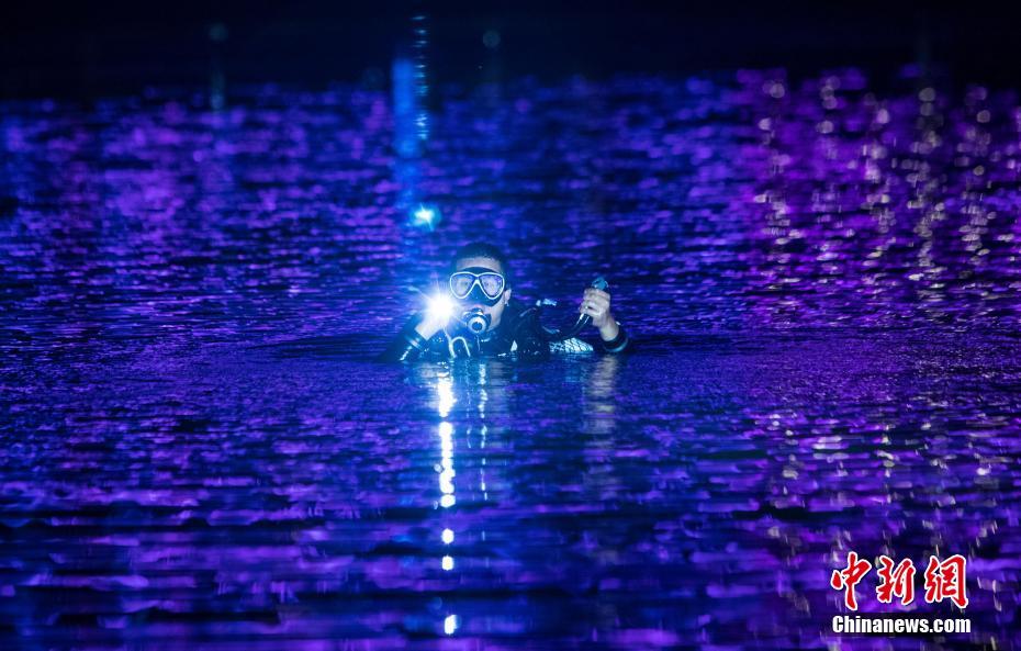 整个系列海报由多幅照片组成,由消防员的各个抢险形象组成,海报中消防员威武豪气。图为水中搜救。吕甲 摄
