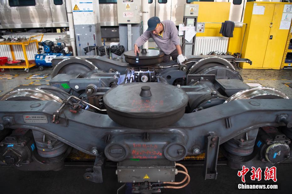 11月5日,京港地铁有限公司架修车间的工人在检修地铁列车的转向架。据介绍,该车间下设二线维修、三线电气、三线机械、三线转向架和检验及调试五个组别,负责地铁列车的架修和重型临修工作,以及大型工艺设备的维修保养工作。该车间拥有3条重型维修股道及配套的工艺设备,可以满足4号线和大兴线共86列地铁列车的架修和临修工作。中新社记者 侯宇 摄
