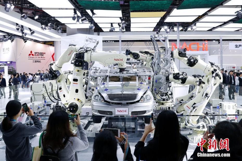 11月8日,汽车车身高密度点焊·组装生产线引人关注。近日,在国家会展中心(上海)举行的第二届中国国际进口博览会,吸引了来自155个国家和地区的3893家企业参展。中新社记者 韩海丹 摄