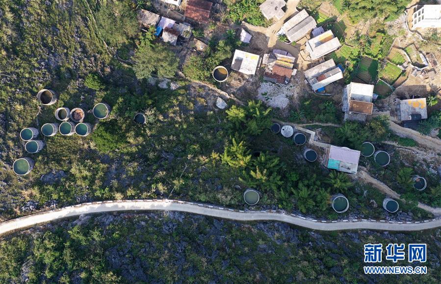 大化瑶族自治县七百弄乡弄雄村的水柜分布在群众的房前屋后(11月10日无人机拍摄)。新华社记者 黄孝邦 摄