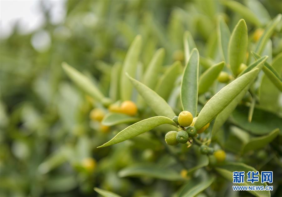 在重庆派森百橙汁有限公司忠县现代化柑橘基地的试验田拍摄的小型柑橘品种(10月23日摄)。新华社记者 刘潺 摄