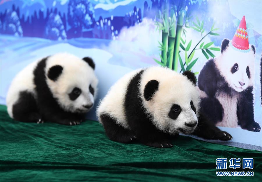11月11日,秦岭大熊猫龙凤胎“佳佳”“园园”在陕西省林业科学院秦岭大熊猫繁育研究中心亮相。新华社记者 李一博 摄