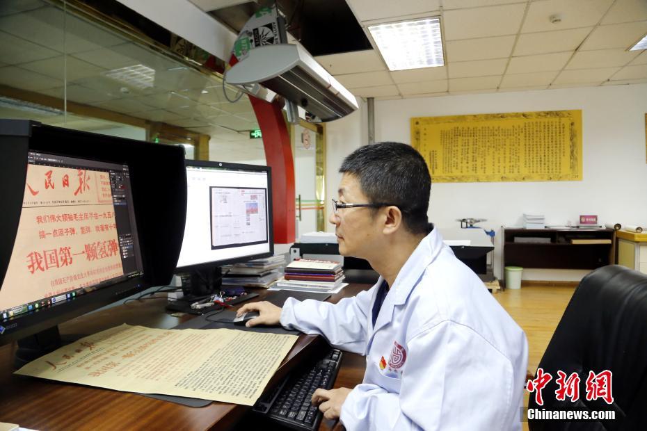11月14日,青海西宁,青海省档案馆的文物复仿制师邢建与徒弟正为珍贵档案的仿真复制工作忙碌。2009年起,计算机专业毕业的邢建主动承担起该档案馆仿真复制工作,他摸索归纳出了破碎法、描边法、仿旧法等仿真复制方法,不仅保护了档案“原件”,也使其发挥了更充分的使用价值。图为邢建利用计算机图像处理软件对需仿真复制的档案进行图像处理。中新社记者 马铭言 摄