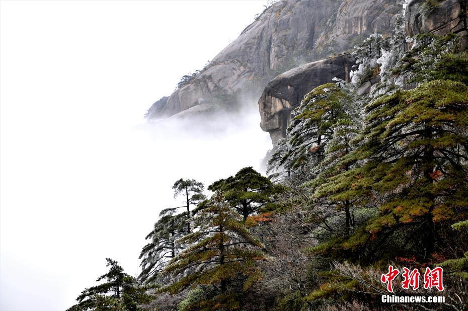 11月18日,安徽黄山迎来今冬首场雾凇景观,黄山奇松怪石晶莹剔透,伴随着云雾缭绕,宛如仙境。黄山是世界文化与自然双重遗产,每年冬季都会吸引来自世界各地的摄影爱好者拍摄雾凇、冬雪、云海等景观。中新社发 王辉 摄