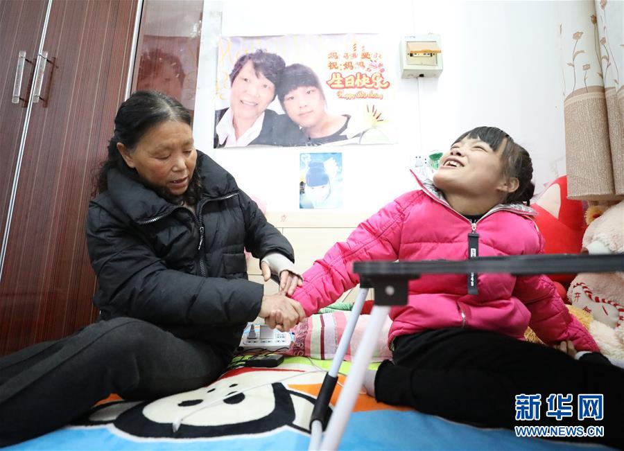 11月5日,在陕西省铜川市耀州区庙湾镇五联村,海浪(右)在母亲的帮助下活动四肢。新华社记者 孙正好 摄