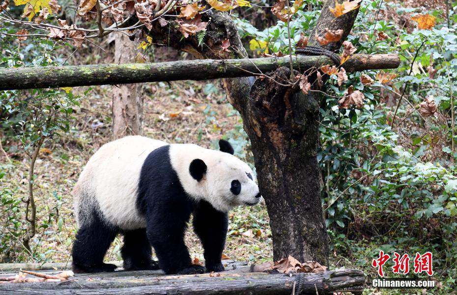 11月21日凌晨,出生于美国国家动物园的雄性大熊猫“贝贝”入住中国大熊猫保护研究中心雅安碧峰峡基地。回国后的大熊猫“贝贝”将接受为期1个月的隔离检疫,隔离检疫期结束后将与公众正式见面。图为大熊猫“贝贝”在户外活动场熟悉新环境。中新社记者 安源 摄