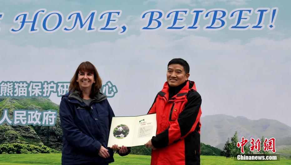 11月21日凌晨,出生于美国国家动物园的雄性大熊猫“贝贝”入住中国大熊猫保护研究中心雅安碧峰峡基地。回国后的大熊猫“贝贝”将接受为期1个月的隔离检疫,隔离检疫期结束后将与公众正式见面。图为移交大熊猫“贝贝”档案。中新社记者 安源 摄