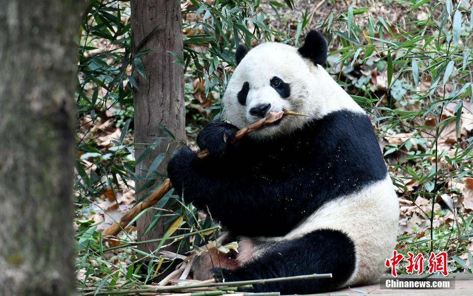 11月21日凌晨,出生于美国国家动物园的雄性大熊猫“贝贝”入住中国大熊猫保护研究中心雅安碧峰峡基地。回国后的大熊猫“贝贝”将接受为期1个月的隔离检疫,隔离检疫期结束后将与公众正式见面。图为大熊猫“贝贝”在享用美食。中新社记者 安源 摄