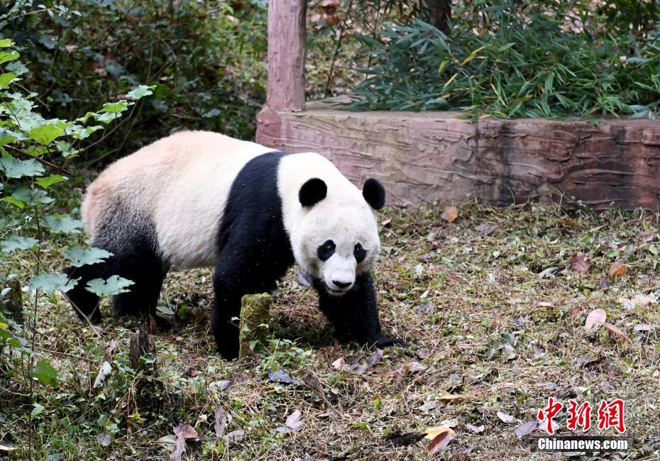 11月21日凌晨,出生于美国国家动物园的雄性大熊猫“贝贝”入住中国大熊猫保护研究中心雅安碧峰峡基地。回国后的大熊猫“贝贝”将接受为期1个月的隔离检疫,隔离检疫期结束后将与公众正式见面。图为大熊猫“贝贝”在户外活动场熟悉新环境。中新社记者 安源 摄