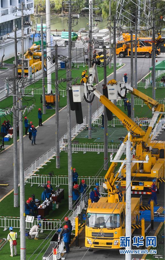 11月21日,选手参加带电作业竞赛。 11月18日至22日,2019年全国电力行业10千伏线路带电作业技能竞赛在浙江湖州的国家电网配电带电作业基地举行。带电作业是配电网生产作业的主要手段之一,指电力工作者在电力设备正常带电运行情况下对电网进行检查、测试、维修、新增用户接入等作业。本次竞赛代表了全国电力行业配电线路工(10千伏带电作业)专业的顶尖技能水平,竞赛历时五天,分理论考试和技能实操两部分,来自全国电力行业的26支代表队150多位参赛选手同台竞技。 新华社记者 徐昱 摄