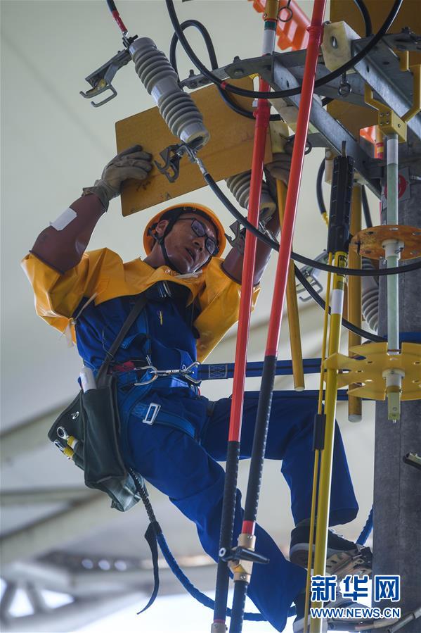 11月21日,选手参加带电作业绝缘杆作业法竞赛。 11月18日至22日,2019年全国电力行业10千伏线路带电作业技能竞赛在浙江湖州的国家电网配电带电作业基地举行。带电作业是配电网生产作业的主要手段之一,指电力工作者在电力设备正常带电运行情况下对电网进行检查、测试、维修、新增用户接入等作业。本次竞赛代表了全国电力行业配电线路工(10千伏带电作业)专业的顶尖技能水平,竞赛历时五天,分理论考试和技能实操两部分,来自全国电力行业的26支代表队150多位参赛选手同台竞技。 新华社记者 徐昱 摄