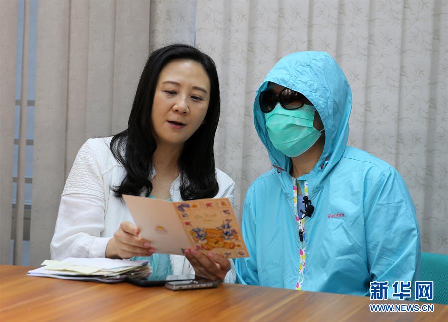 11月23日,香港特区立法会议员葛珮帆(左)为李太念来自香港市民的心意卡。 新华社记者 李震 摄