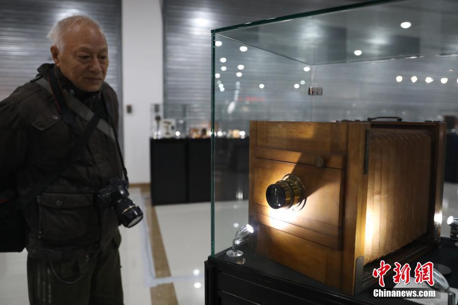 11月24日,“仰望未来之传承经典”超百台名人大画幅相机和放大印象器材摄影艺术展系列活动在北京酷车小镇国际汇展中心举行。摄影爱好者在此体验大画幅相机的魅力。图为大画幅照相机吸引观众。中新社记者 蒋启明 摄