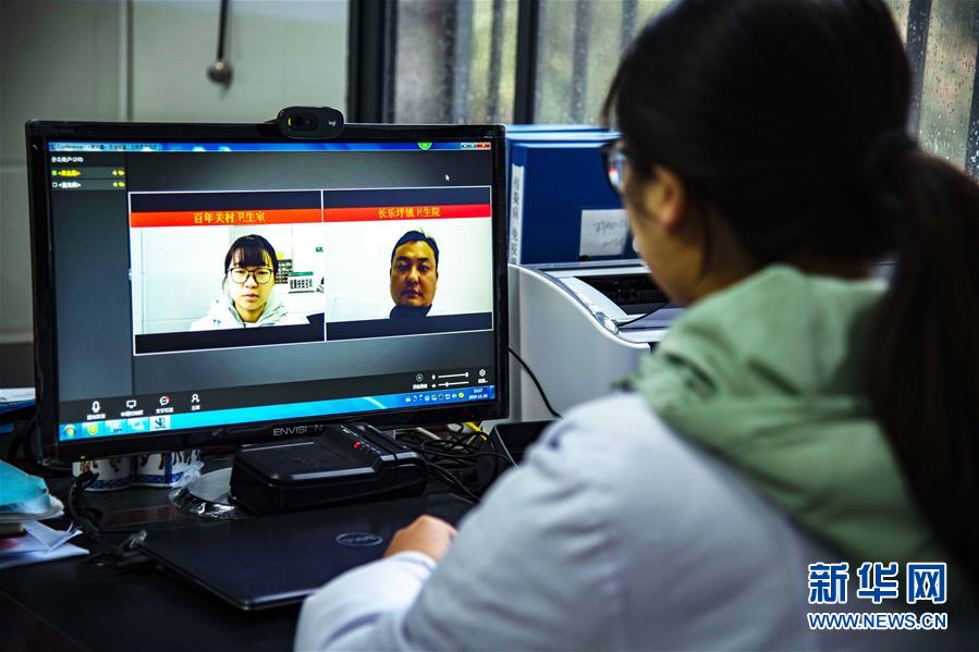 11月24日,大学生村医杨海燕在利用远程诊疗系统与导师讨论交流村民病情,她于今年3月分配到湖北省五峰土家族自治县长乐坪镇百年关村卫生室。