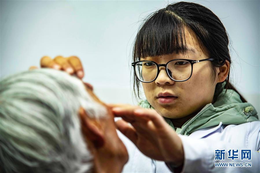 11月24日,大学生村医杨海燕在为村民看病。 新华社记者 杜华举 摄
