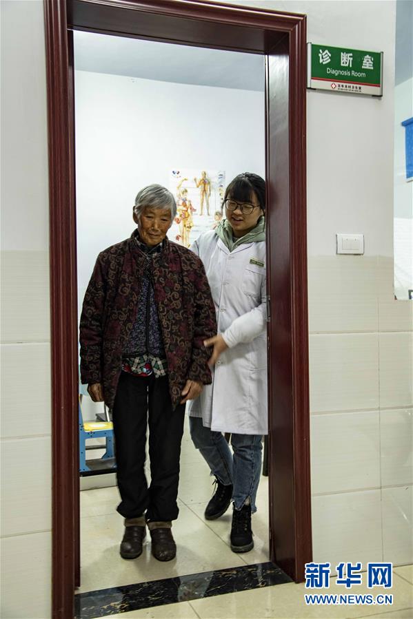 11月24日,大学生村医杨海燕与一名患者走出诊室。 新华社记者 杜华举 摄