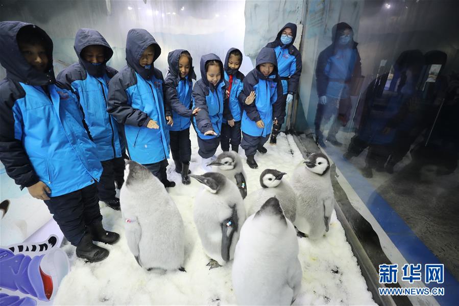 广东珠海:小学生零距离接触帝企鹅