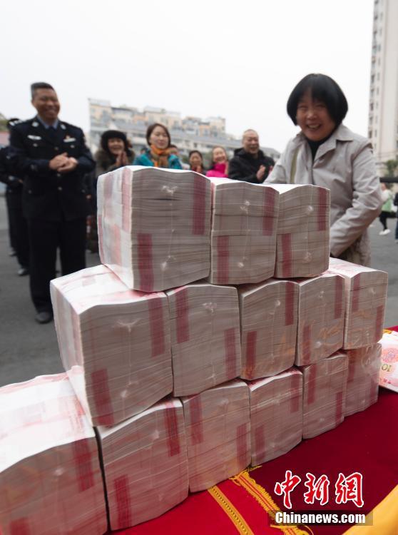 11月26日,在江西省新余市袁河分局电信网络诈骗专案赃款发还现场。 赵春亮 摄