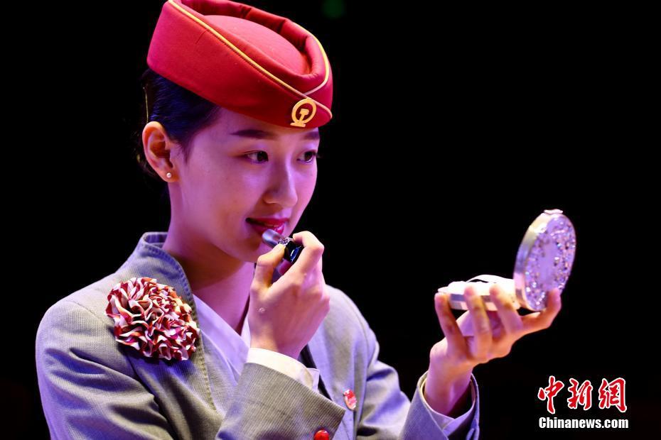 图为正在培训的“高姐”正在补妆。 张学东 摄