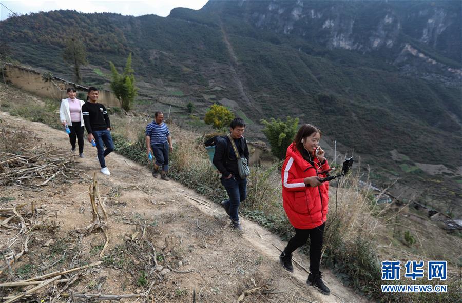 一名网络主播在阿土列尔村直播(11月23日摄)。新华社发(王曦 摄)